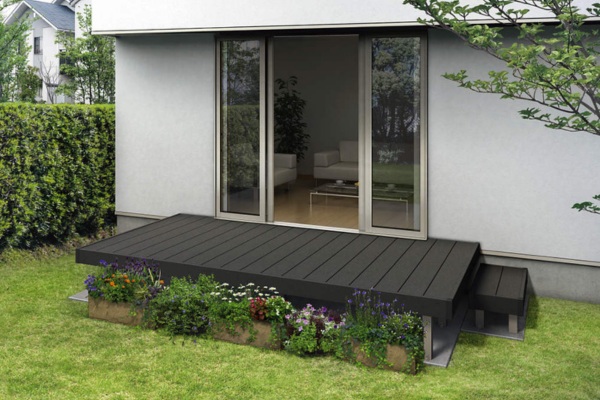 デッキから庭に出る際のステップを設けることも可能です。別途、現場確認の上、お見積りさせていただきます。