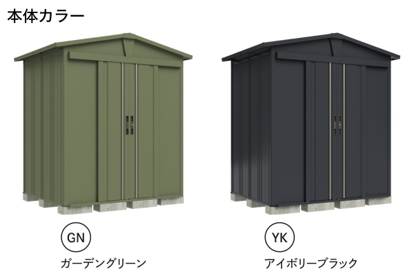 | カラー | 扉・壁・骨組:ガーデングリーン(GN)、アイボリーブラック(YK) 屋根:タウングレー 床:シルバーグレー |