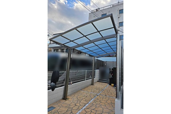 施工事例|限られたスペース、埋設管、偏心基礎によるカーポート施工