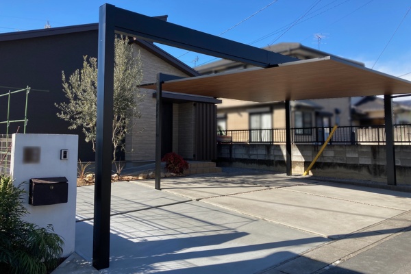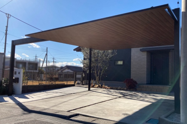 施工事例|お客様推し三協アルミのカーポートFⅡ×土間コンクリートで美しい外構空間に!