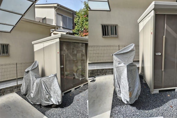 お客様のご要望は、既存のカーポートと干渉しないことと、物置との取り合いでした。一緒に検証を行いました。
