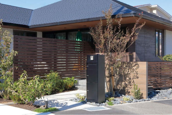 UNISONのユニットウォール「Mies ミース」は、無駄を削ぎ落としたモダンなデザインで、郵便ポスト+上下2段式の宅配ボックスを備えることで、複数の荷物受取にも対応が可能です。設置方法は、基礎埋込用台座が付属した<埋込仕様>と<アンカー仕様>からお選びいただけます。